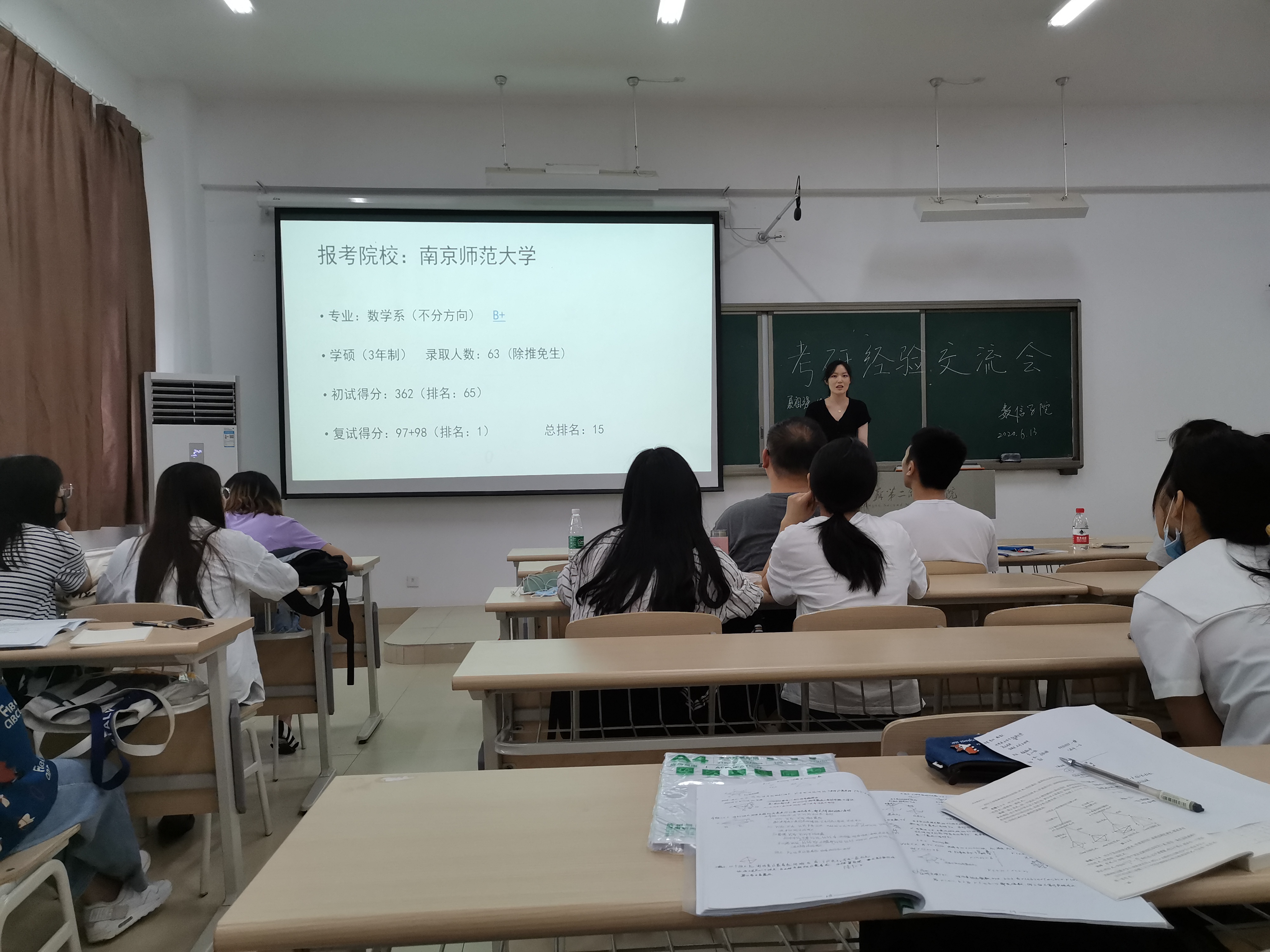 6月13日,数学与信息技术学院在博学楼1-211举办了考研经验交流会。本次交流会由陈波副院长主持,刘丹老师及考研成功“上岸”的韦思瑶等6名学生受邀出席。交流会主要针对当下考研形势、考研经验进行探讨,以便同学们更好地抓住考研重点,一战成研。