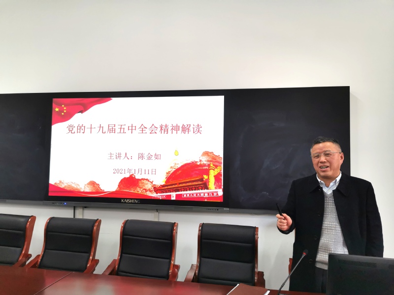 2021年1月11日下午校纪委书记陈金如教授在明理楼1-502报告厅为数信学院师生代表讲授了一堂关于党的十九届五中全会精神解读的“形式与政策”课。