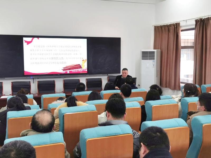 陈书记指出,十九届五中全会是我们党在全面建成小康社会胜利在望、全面建设社会主义现代化国家新征程即将开启的重要历史时刻召开的一次十分重要的会议,是在我国将进入新发展阶段、实现中华民族伟大复兴正处在关键时期召开的一次具有全局性、历史性意义的会议。全会通过的《中共中央关于制定国民经济和社会发展第十四个五年规划和二〇三五年年远景目标的建议》,是开启全面建设社会主义现代化国家新征程、向第二个百年奋斗目标进军的纲领性文件,也是今后5年乃至更长时间我国经济社会发展的行动指南。陈书记列举了大量事例、分析了数据,要求我们科学把握发展新发展阶段、深入贯彻新发展理念、加快构建新发展格局、坚持党的全面领导,为实现“十四五”规划和2035年远景目标而团结奋斗。