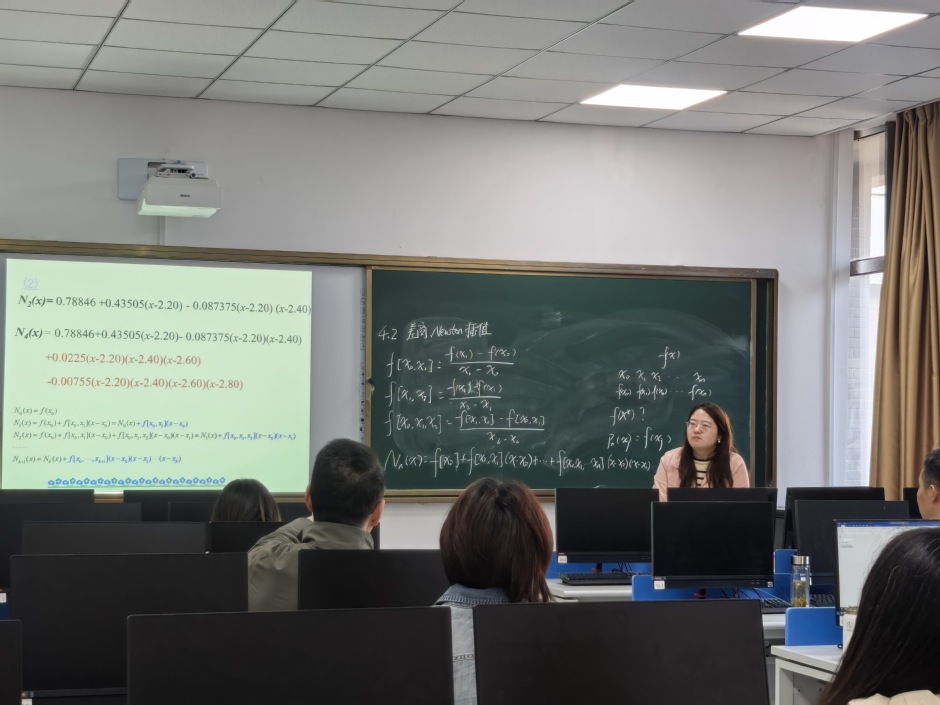 统计专业组的李晓彤老师深耕“独立性”教学,结合统计案例解析概念内涵与判断方法;汪海妹老师则以“差商、牛顿插值”为授课重点,条理清晰地呈现插值原理、推导步骤与实际应用,展现出良好的教学把控能力。
