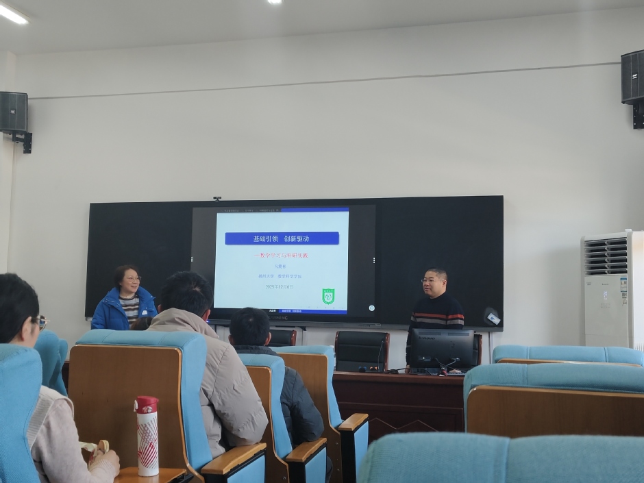 12月8日下午,应我校数学科学学院邀请,扬州大学数学科学学院博士生导师凡震彬教授为学院师生作了题为“基础引领 创新驱动—数学学习与科研实践”的学术报告。本次报告由学院党总支书记凌晓牧主持,部分教师与基地班学生积极参与并就相关议题进行了深入交流。
